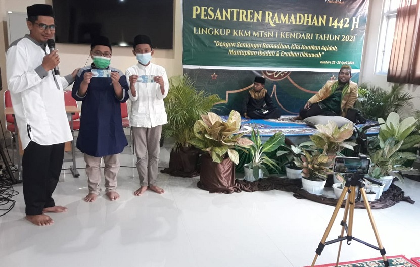 Kendari,( Humas Sultra) — Kegiatan Pesantren Ramdhan Madrasah Tsanawiyah Negeri (MTsN) 1 Kendari yang dibuka oleh Kakankemenag H. Zainal Mustamin M.A, pada jumat 23 April 2021 fokus pada literasi Alquran .Para peserta mengikuti kegiatan ini dari jam 08.00-15.00 WITA,panitia menyuguhkan materi tentang Tajwid, Tahsin dan Tilawah. Panitia mengundang narasumber yang handal dibidang nya masing masing dan mampu mensgesti para peserta untuk tetap konsen mengikuti kegiatan ini dengan baik. Dra Hj.Nurshaleha sebagai pemateri Tajwid memberikan ulasan ilmu tajwid secara lengkap.” Dan Ustaz Laode Muhammad Kodam memberikan materi tentang tilawah. Dengan mempraktekkan langsung nada nada dalm ilmu tilawah.